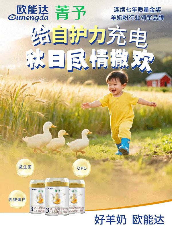 助力宝宝在秋日里快乐玩耍,活力满满~好羊奶,选欧能达~🥛
