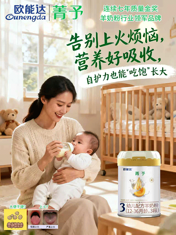 #欧能达菁予羊奶粉,小分子亲和肠道,HMO、益生菌调节微生态,OPO软化便便,告别上火烦恼,
