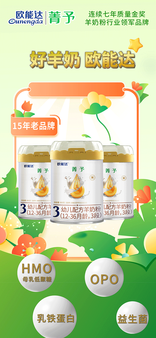 🍎#欧能达菁予羊奶粉,小分子更易吸收,HMO模拟母乳低聚糖 、益生菌调节菌群,OPO优化吸收,从肠道开始加固自护力,给宝宝“金钟罩”式防护~